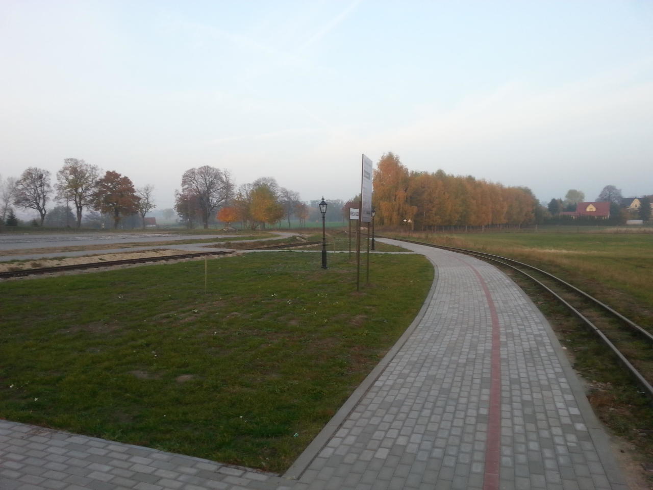 Peron stacji przy muzeum, widok w kierunku Żnina. Z lewej strony dochodzi tor łączący linię z torami w muzeum, w chwili robienia zdjęcia był przerwany, prawdopodobnie z powodu remontu.