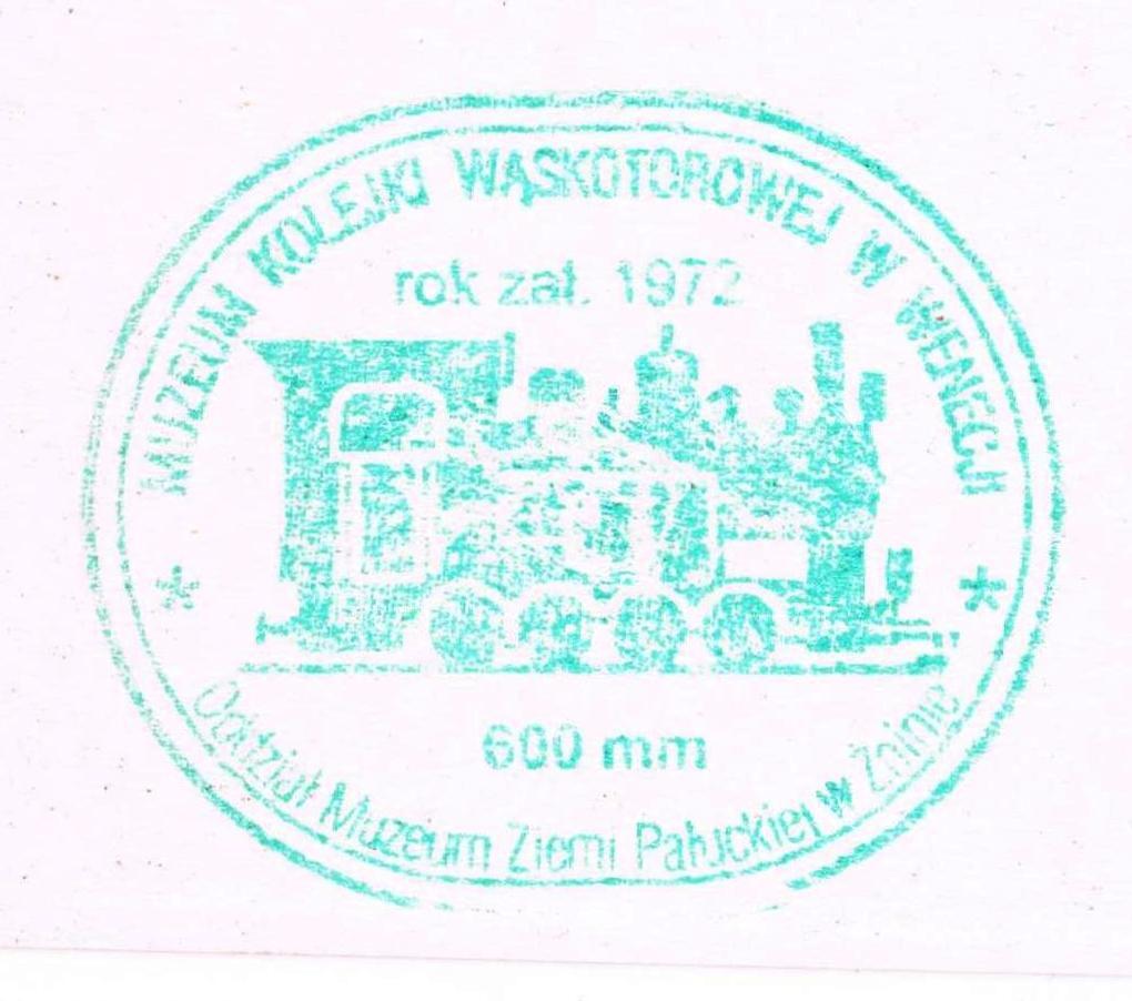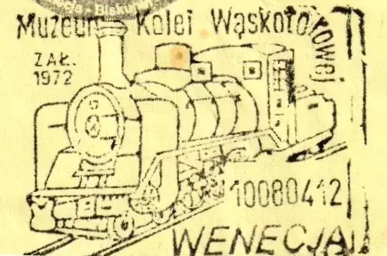Pieczątka Muzeum Kolejki Wąskotorowej w Wenecji.