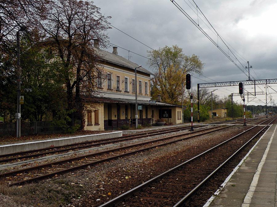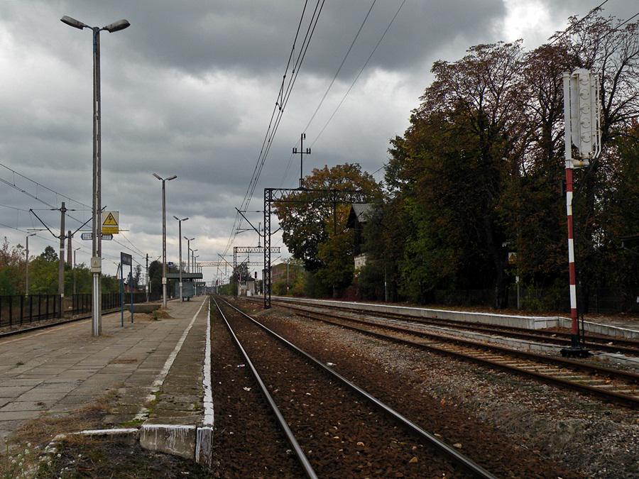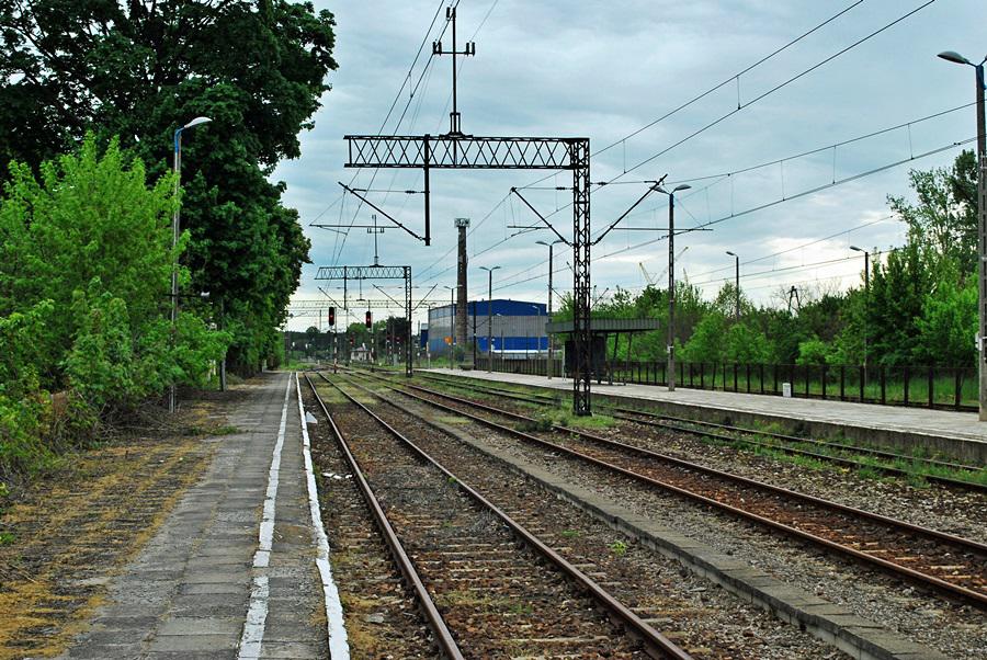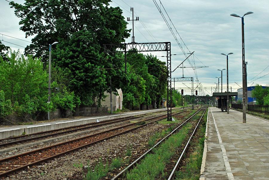 Widok na północ z przejazdu kolejowego. Po prawej zlikwidowana w trakcie elektryfikacji nastawnia wykonawcza. Wyjazd do Stalowej Woli.