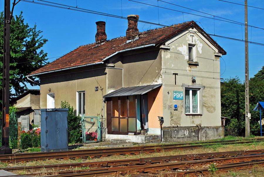 Nieczynna nastawnia wykonawcza, stojąca na wyjeździe do Stalowej Woli (w lewo).