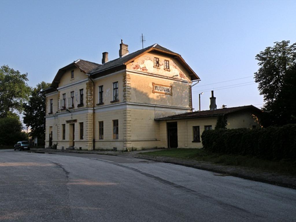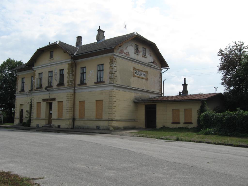 Budynek dworca w Rudniku nad Sanem. Widok od strony peronu i wjazdu ze Stalowej Woli.