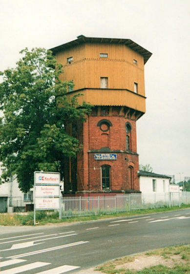 Jedna z czterech wież wodnych w kompleksie stacji Słupsk. Do dziś zachowały się trzy, żadna z nich nie pełni pierwotnej funkcji. Widoczna na zdjęciu wieża wodna obsługiwała obecnie nieczynny i zdewastowany kompleks parowozowni. Około 100 metrów dalej w stronę stacji stoi druga wieża, która obsługiwała żurawie wodne w peronach (też już nieistniejące). Trzecia, przy ul Kołłątaja została zaadoptowana do innych celów.