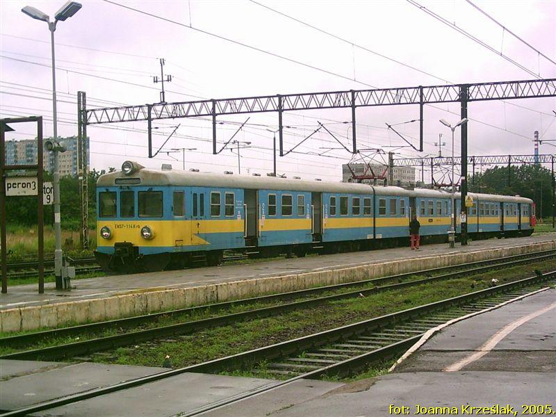 Peron 3. EN57-1148 jako pociąg osobowy do Ustki.