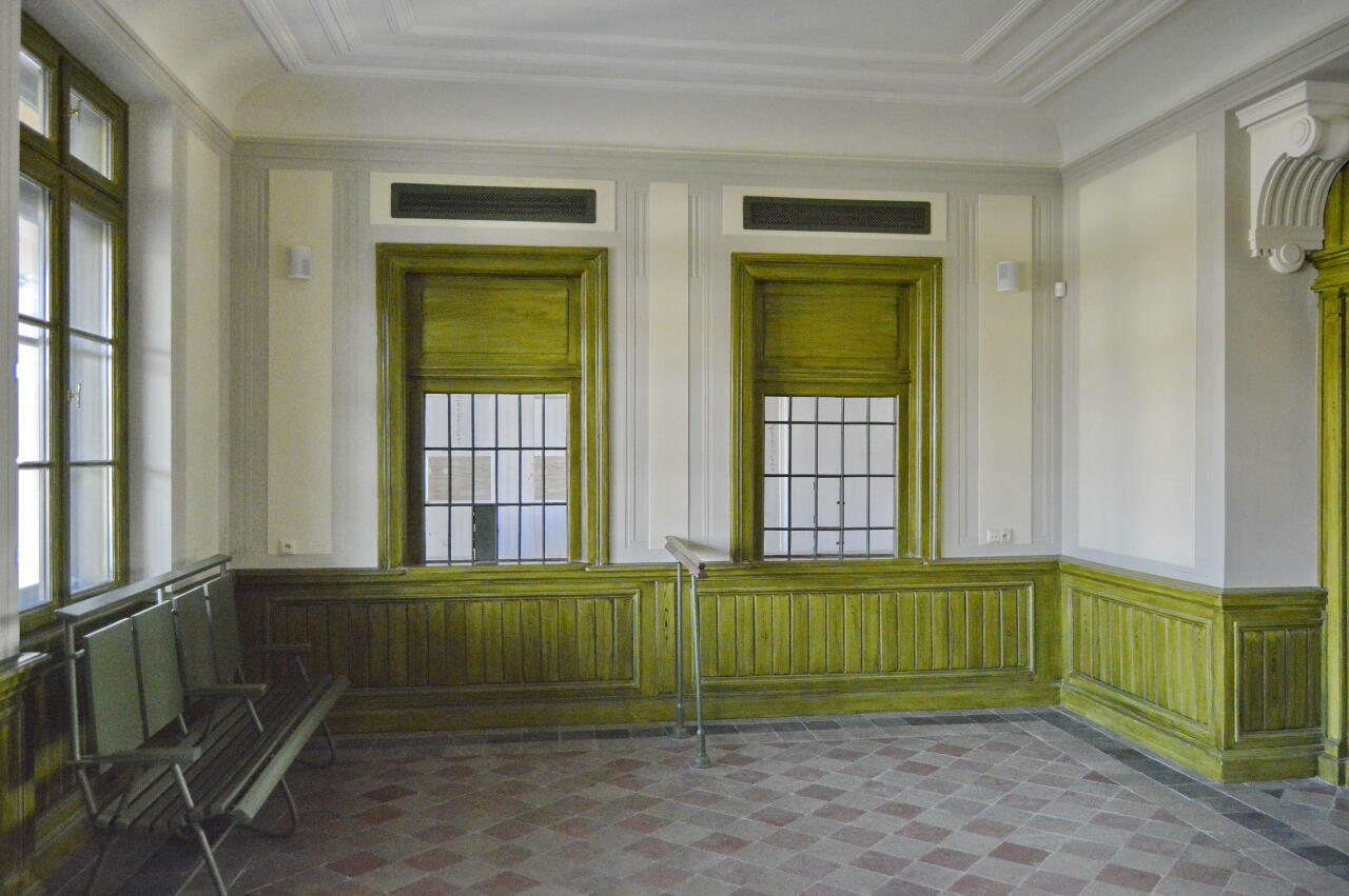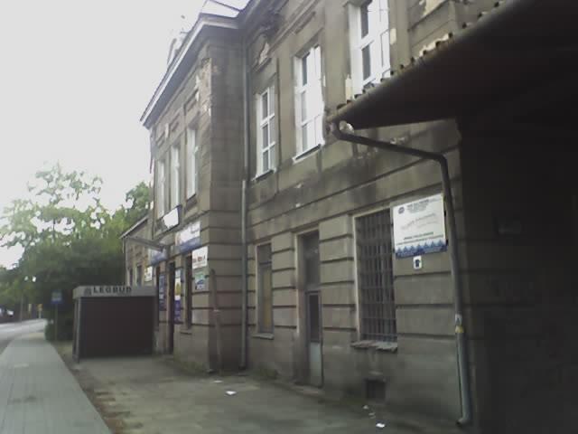 Budynek dworca od strony torów ze starannie zabitym wejściem zawiadowcy….