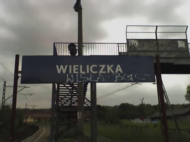 Wieliczka, km 4. Nieczynny dworzec. W prawo Kraków, w lewo Wieliczka Rynek.