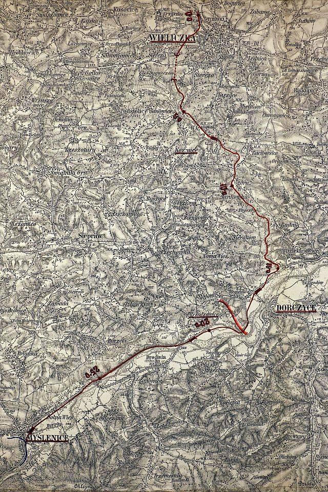 Projekt niewybudowanej linii Wieliczka-Myślenice z ok 1908 r.