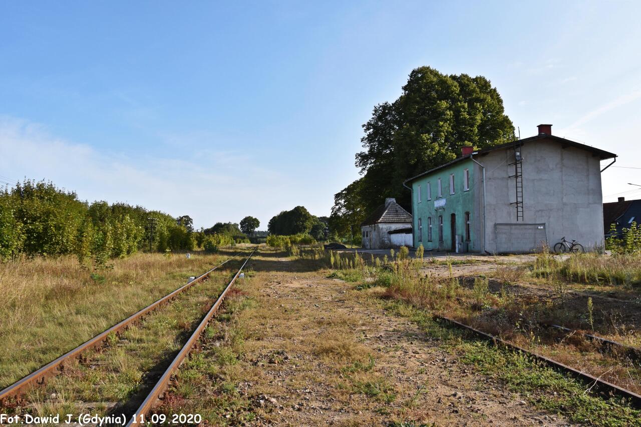 2012-09: Dawniej lokalny węzeł kolejowy, obecnie linia w kierunku Człuchowa rozebrana, tak jak i dodatkowe tory stacyjne. Zlikwidowano także mijankę i ładownię, pociągi pasażerskie są krzyżowane w Miastku. (info: Michał Pietrusiński)