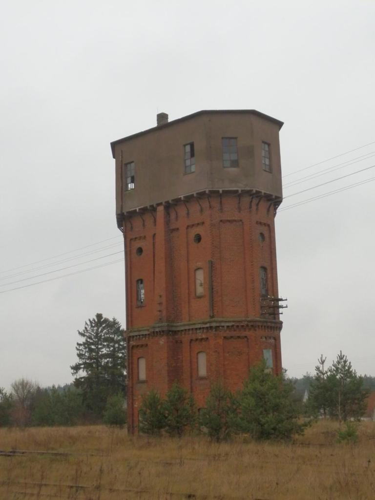 | wieża wodna: | 2012-11: Dwuzbiornikowa wieża wodna stoi ok. 410 m na pd od budynku dworca, (info: Bolesław Wojtyniak). | |