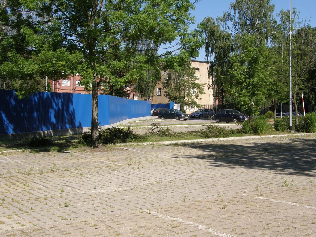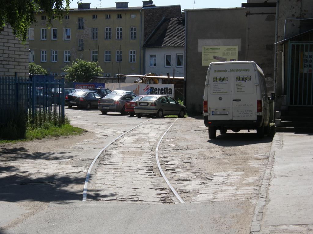 Tor kolejowy biegł przez parking. Widok w kierunku stacji Elbląg. 2,6 km.