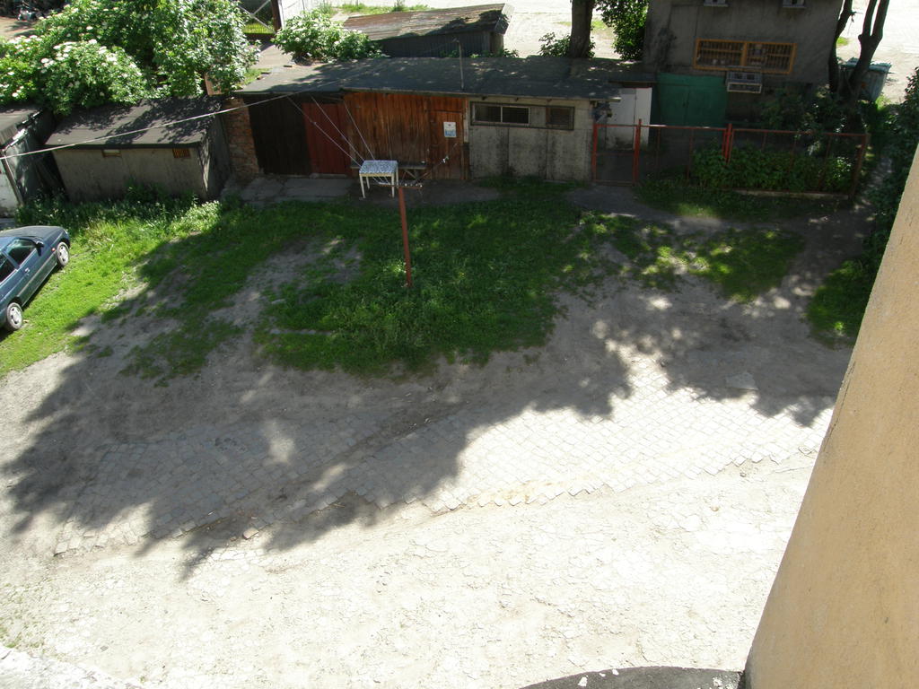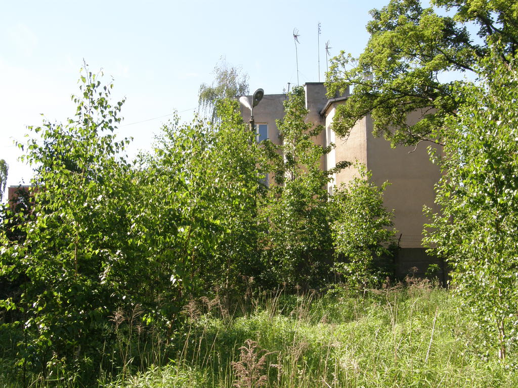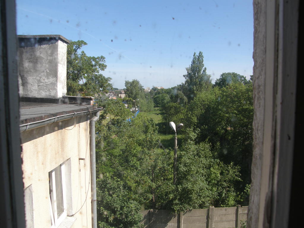 Teren dawnego torowiska. Zdjęcie z budynku dworcowego (na niższym piętrze widok zasłaniają drzewa, tu nie otwiera się okno). Widok w kierunku Tolkmicka. 2,7 km.