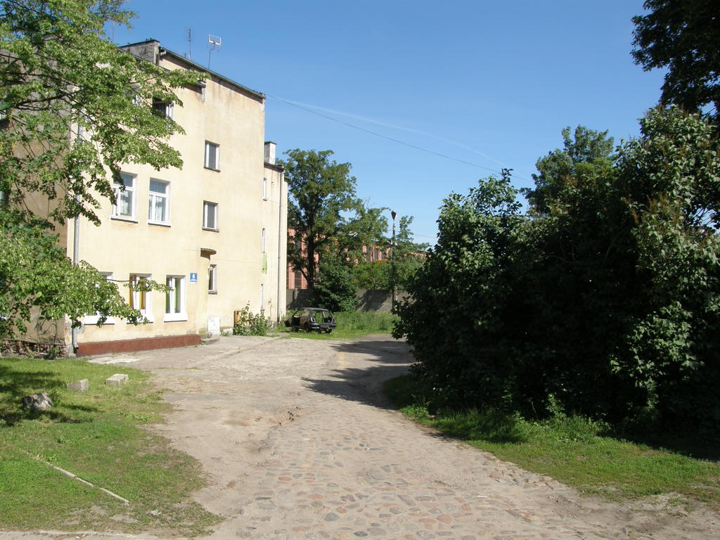Budynek dworcowy od strony byłych torów. Skwer Ofiar Sprawy Elbląskiej 6 (dawniej Hoża 6). Widok w kierunku stacji Elbląg. 2,6 km.