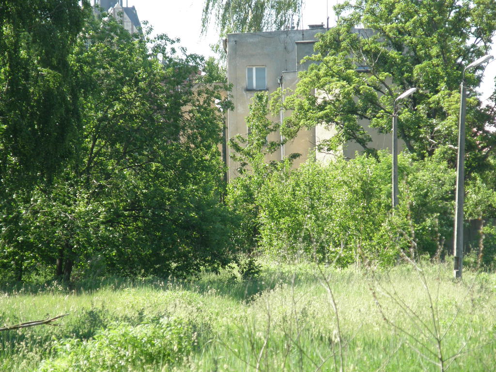 Teren dawnego torowiska. Po lewej budynek dworcowy od strony byłych torów. Skwer Ofiar Sprawy Elbląskiej 6 (dawniej Hoża 6). Widok w kierunku Tolkmicka. 2,6 km.