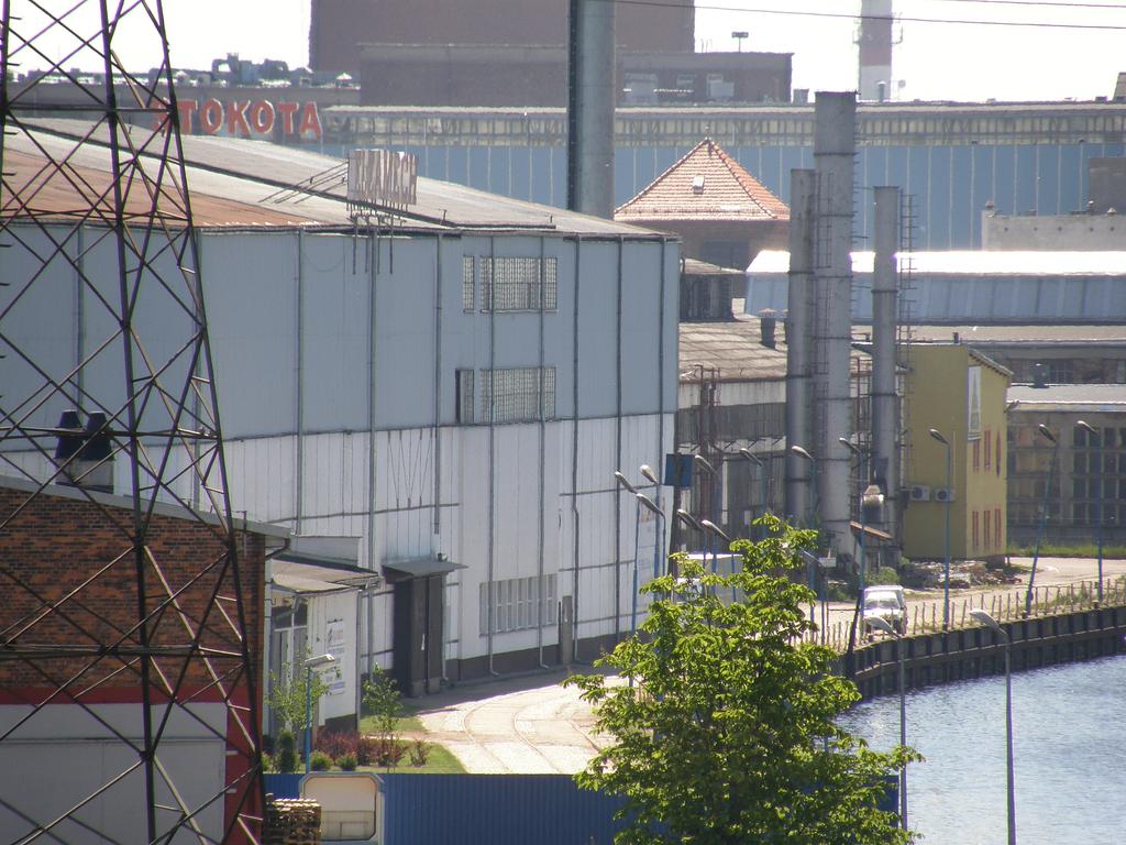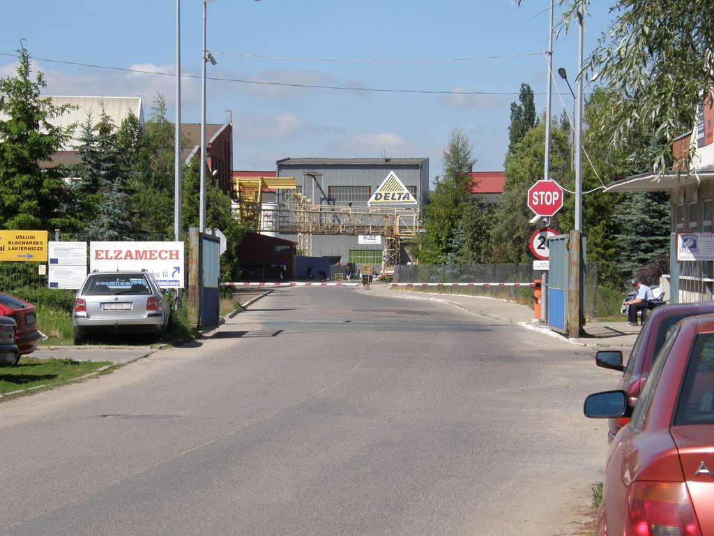 Teren dawnego torowiska. Po lewej teren Alstomu. Są dwie bramy, bo były co dwa tory, szlakowy po prawej. Widok w kierunku Tolkmicka. 2,9 km.