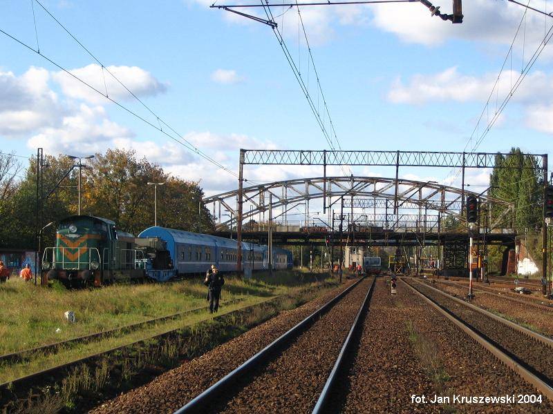 Wiadukt, pociąg ratowniczy i w tle Wr1 na końcu stacji.