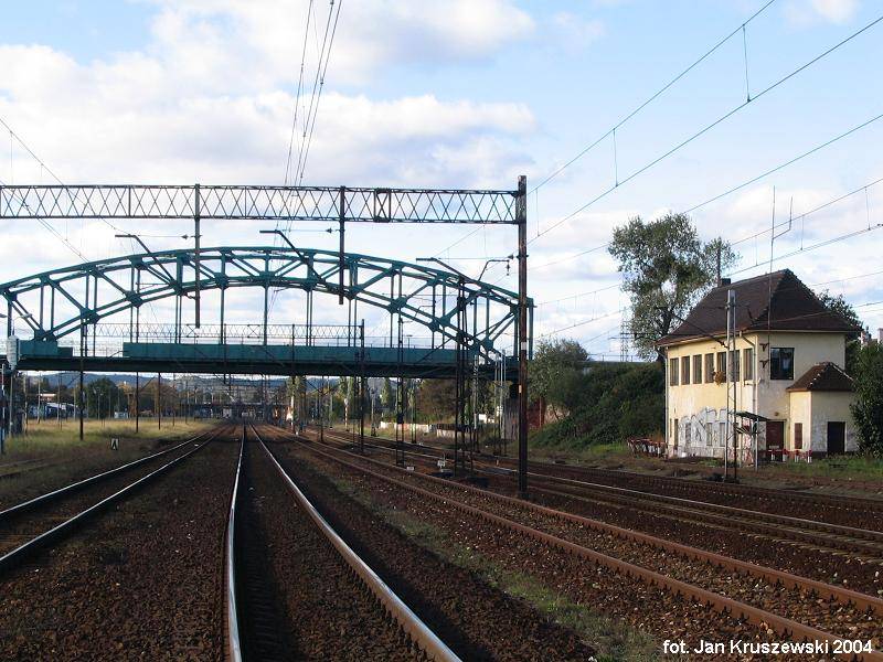 Nastawnia bramowa (obecnie niszczeje) od strony Gdańska, z pociągiem GRYF.