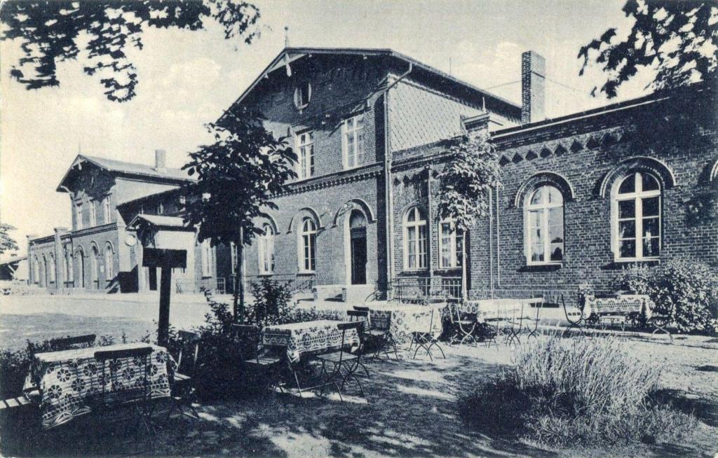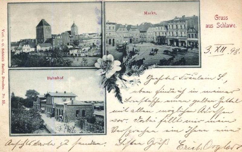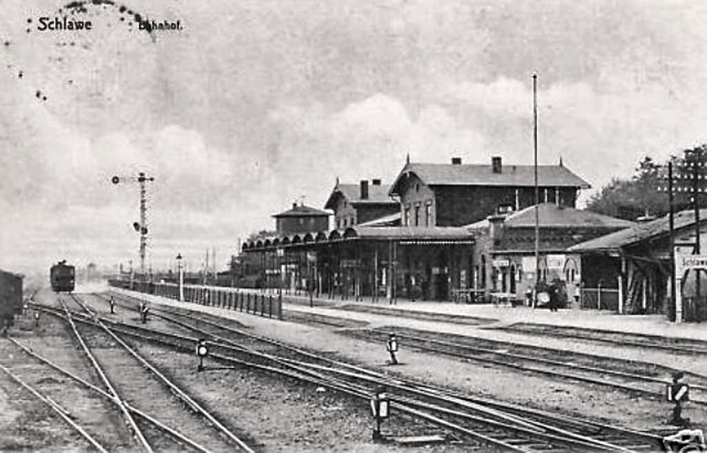 Sławno, dworzec od strony ulicy, zdjęcie wykonano ok. 1940 r.