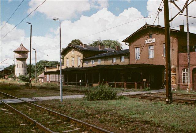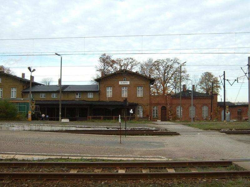 Sławno-zespół dworca kolejowego z 1869 roku.Widok od południa,od strony peronów.Fot.D.Naczk.