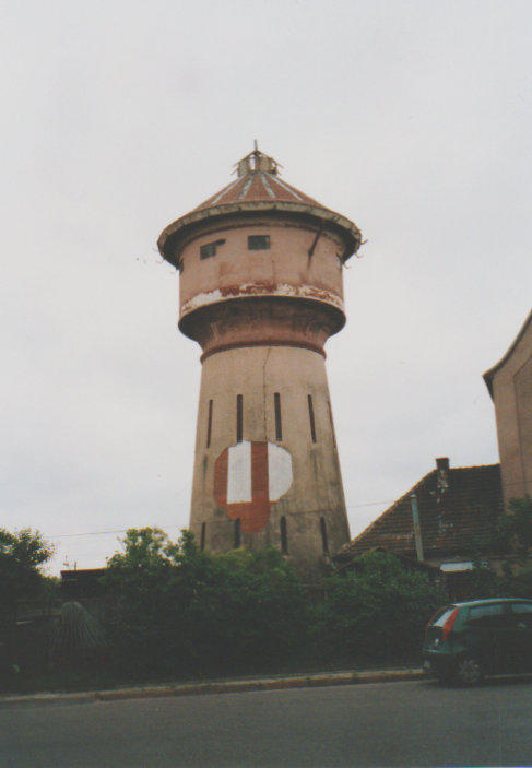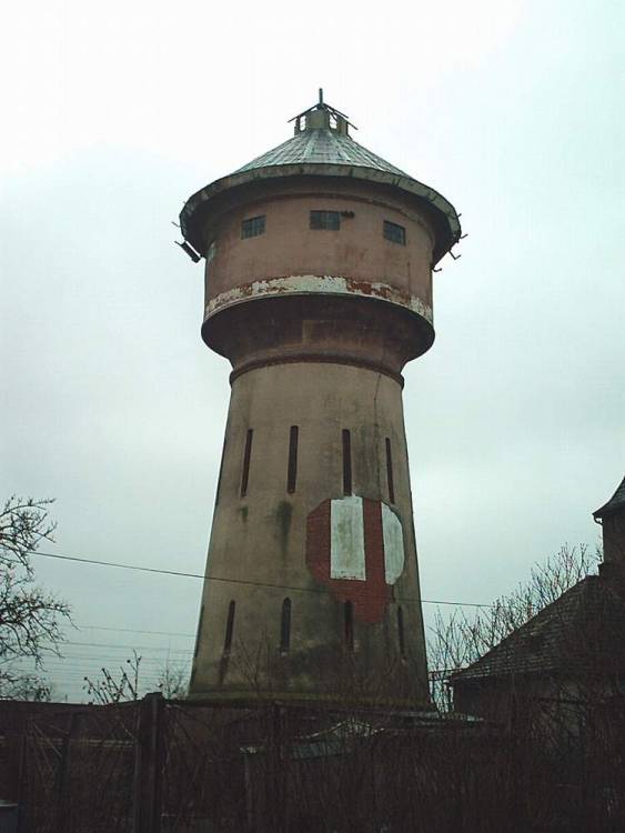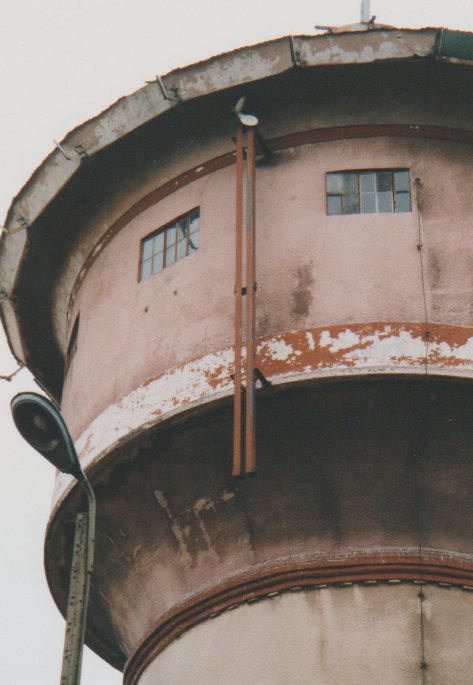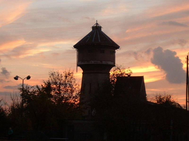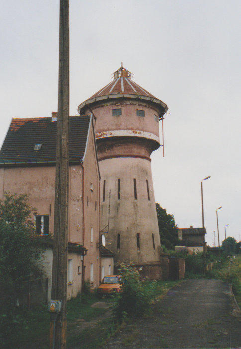 Sławno. Kolejowa wieża wodna widok z ul. Dworcowej.