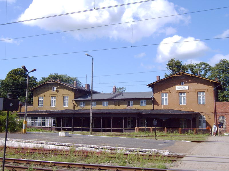 Sławno-zespół dworca kolejowego z 1869 roku.Widok od strony północnej.Fot.D.Naczk.