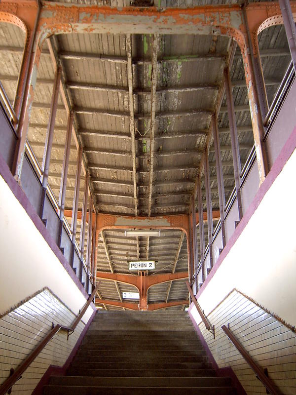 Sławno-zespół dworca kolejowego z 1869 roku.Wyjście z przejścia podziemnego na peron nr 2,zabytkowa konstrukcja zadaszenia.Fot.D.Naczk.
