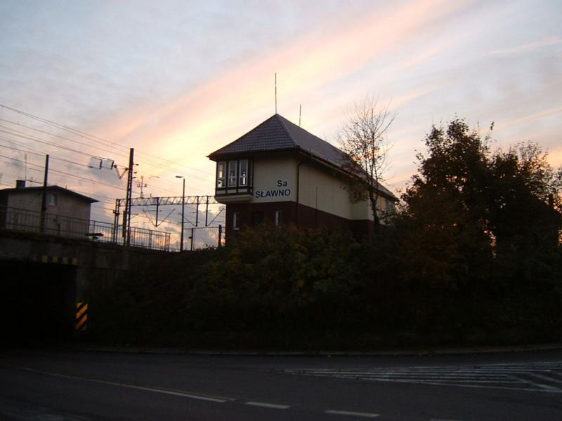 Stacja Sławno. Widok na budynek dworca od strony Słupska i Korzybia.