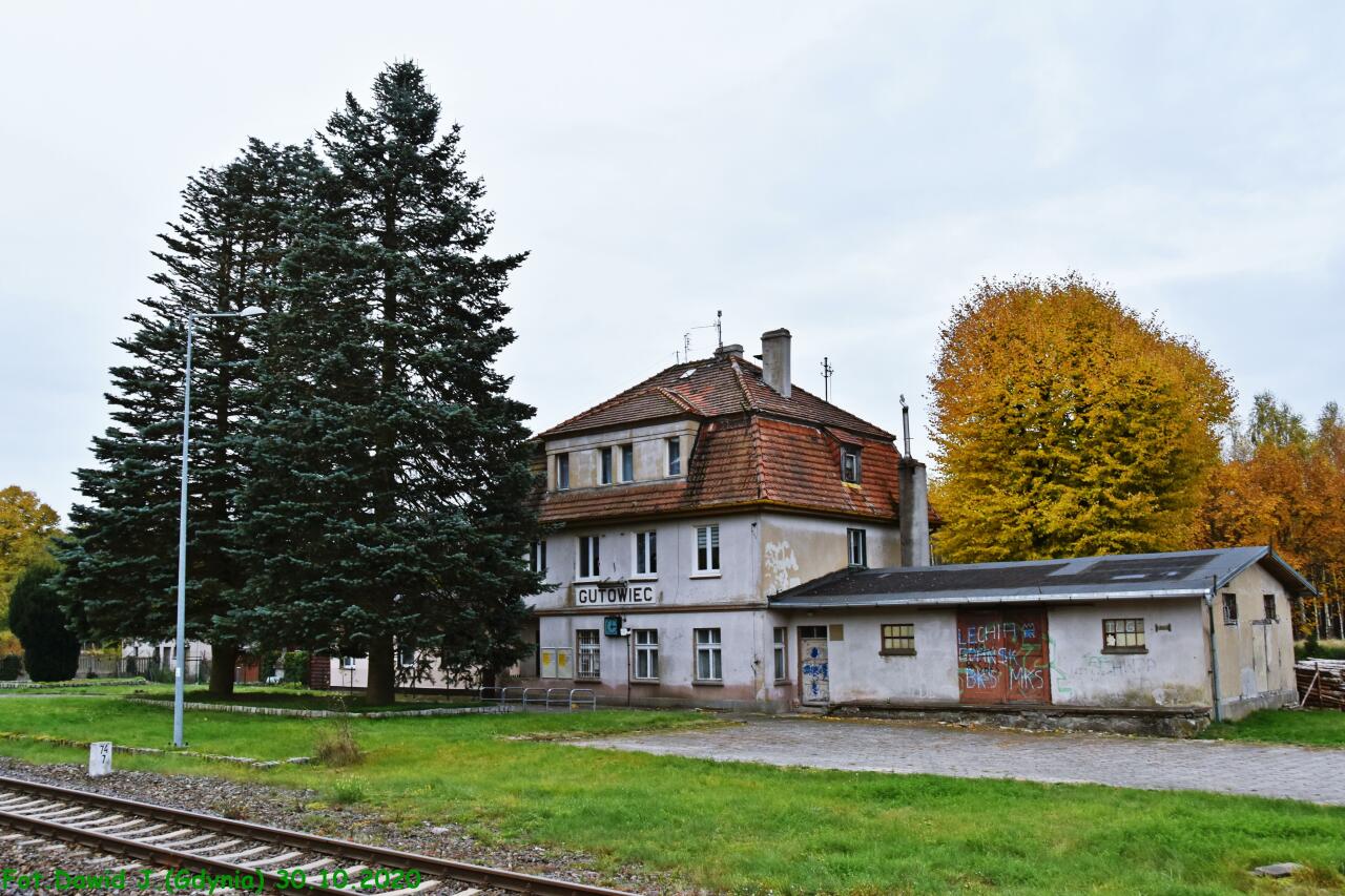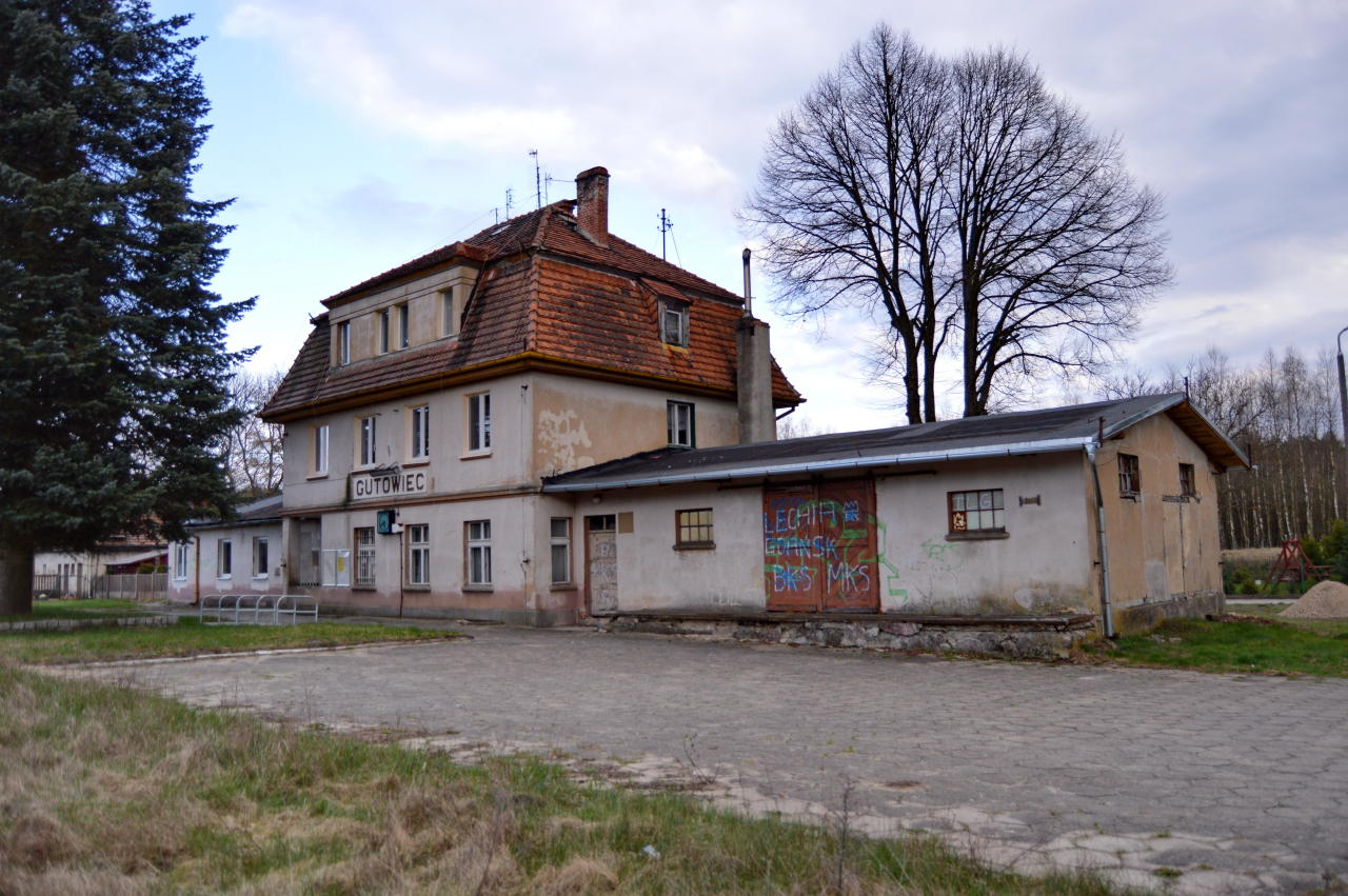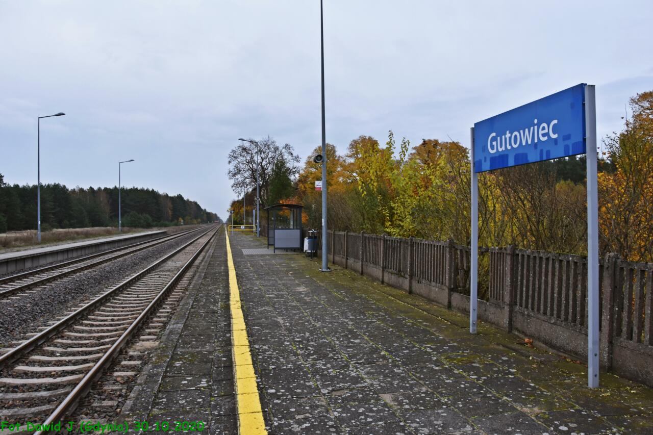 Gutowiec, widok na perony od strony wjazdu z Chojnic.