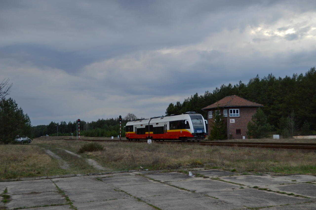 SA133-005 jako pociąg do Chojnic. Widok tamże. Z prawej nastawnia dysponująca.
