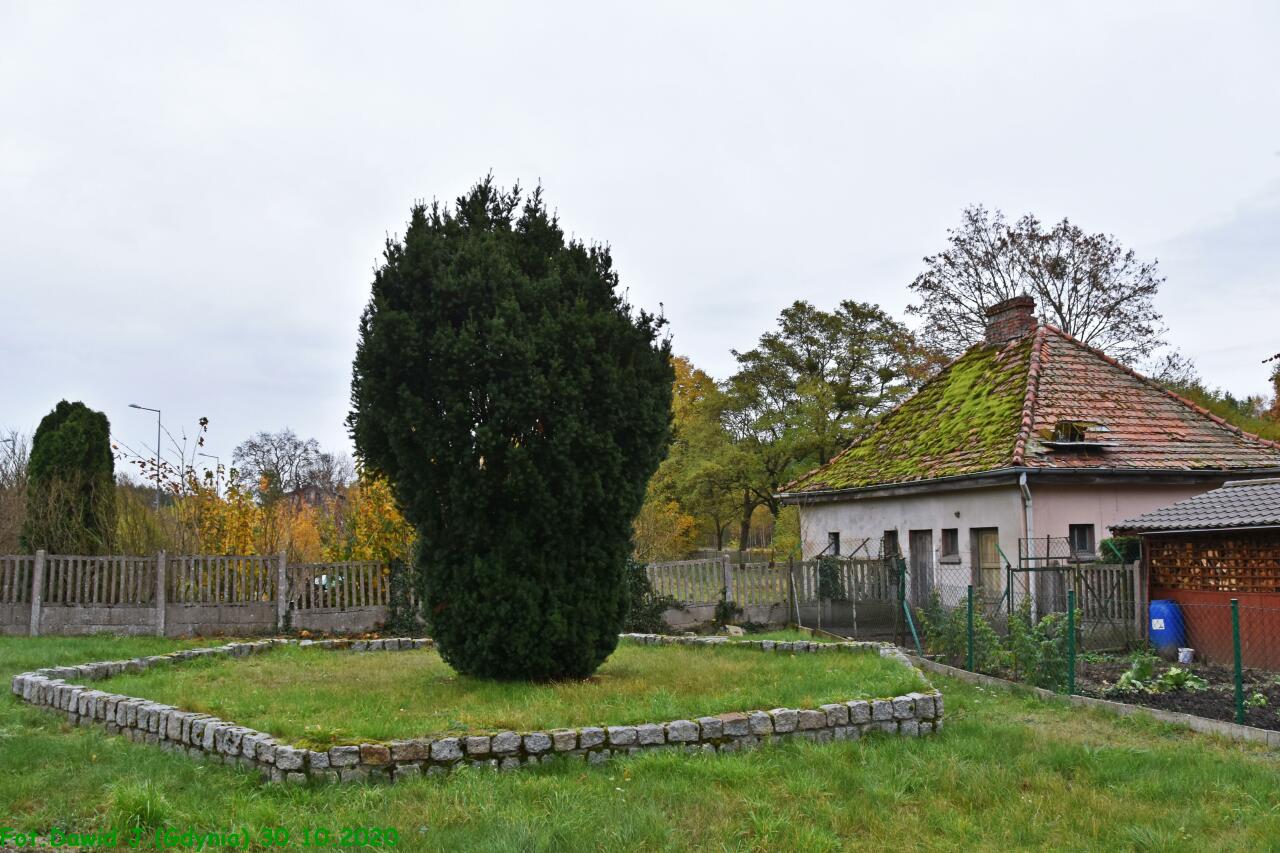 Piękna choinka przy nastawni dysponującej w Gutowcu. W prawo dworzec i perony, w lewo Chojnice.