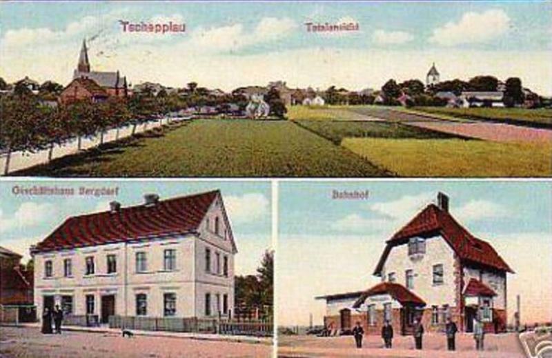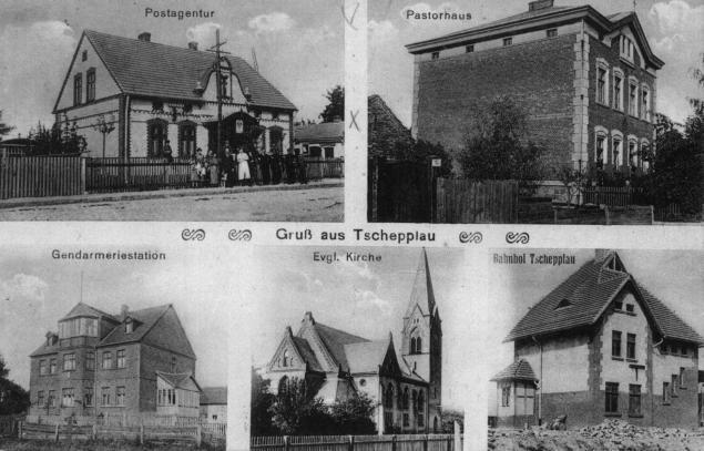 W prawym, dolnym polu budynek dworca od strony peronów; w prawo Grodziec Mały/Głogów, w lewo Lipinka Głogowska/Sława Śląska. Stara pocztówka.