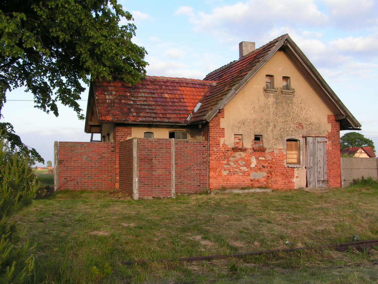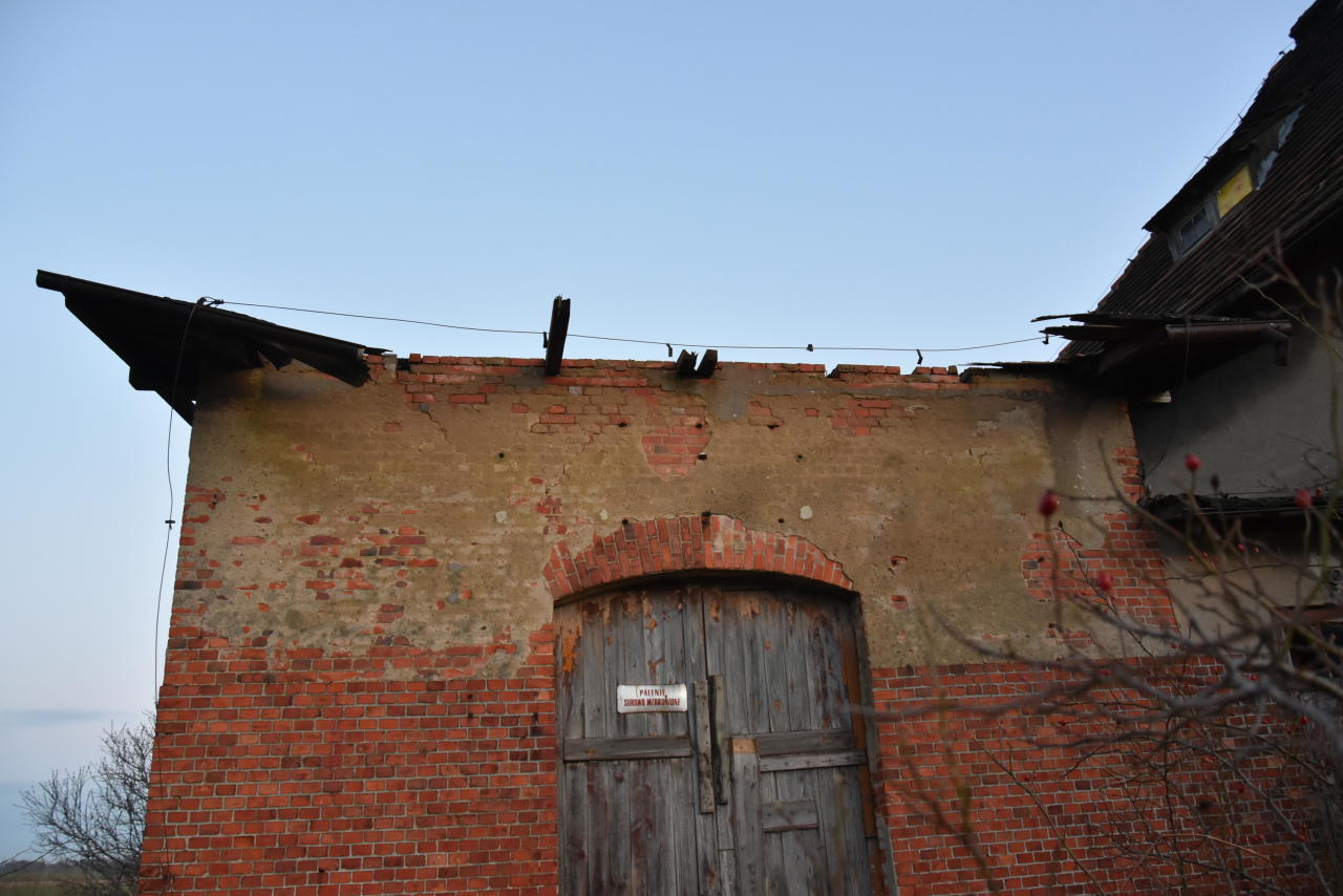 Magazyn towarowy i fragment budynku dworca w Krzepielowie. Widok w kierunku północnym (Lipinki Głogowskie/Sława Śląska).