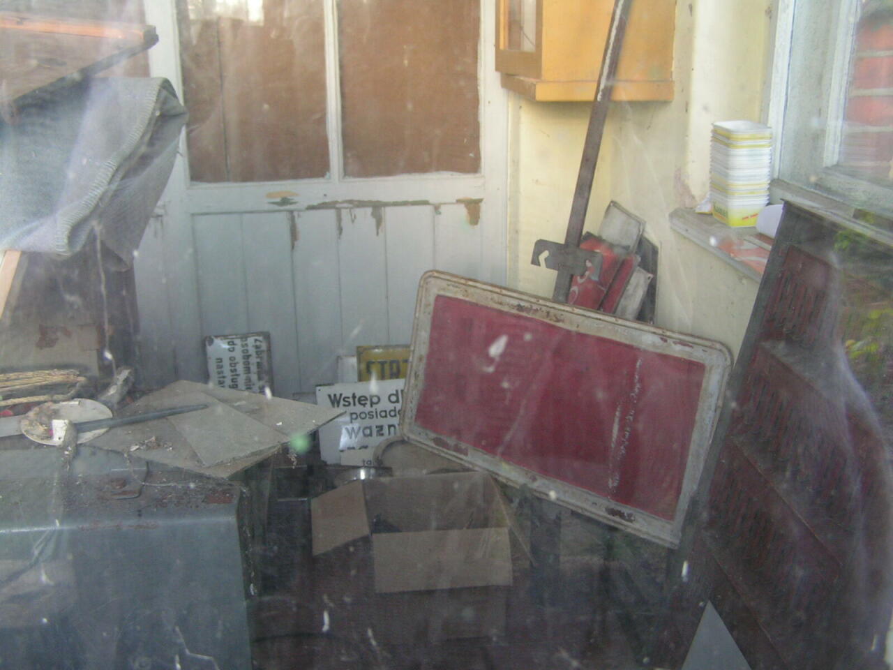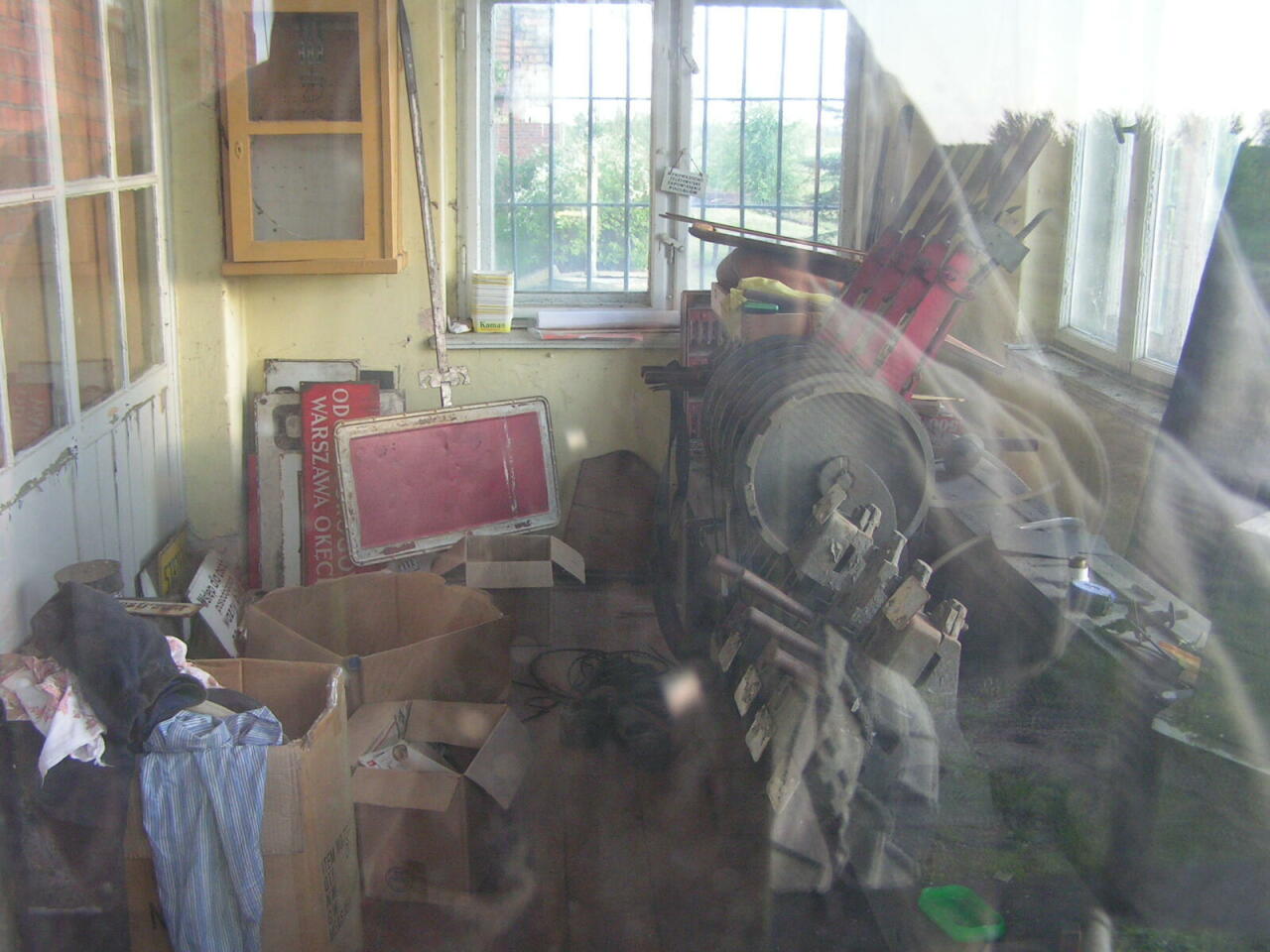 Dyżurka i nastawnia. Bardzo ciekawe "zbiory" np. tabliczka z napisem "Warszawa Okęcie".