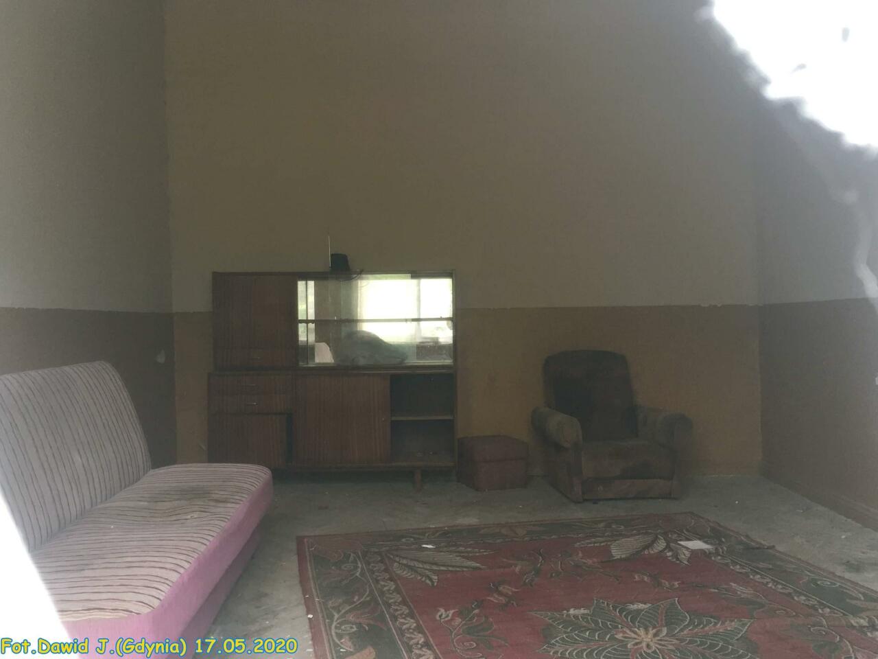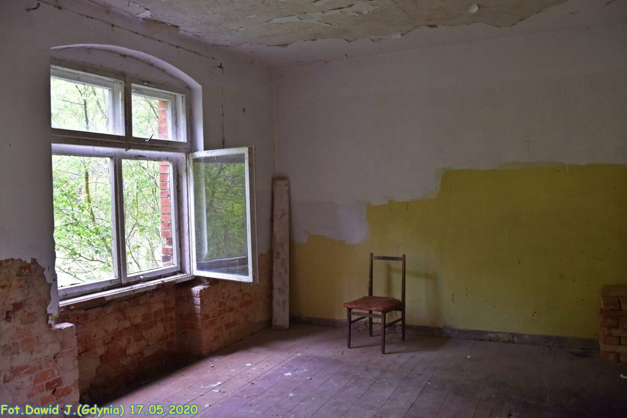 Wnętrze budynku dworcowego. Dawna poczekalnia dla podróżnych.